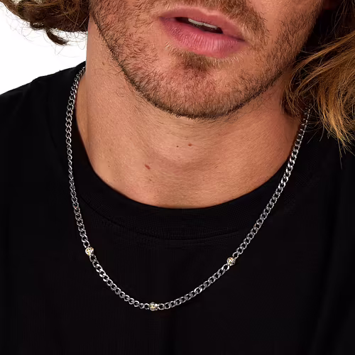 Collana in acciaio uomo con decorazioni smaltate, lunghezza cm.50,5 , scatola e garanzia 3 anni.